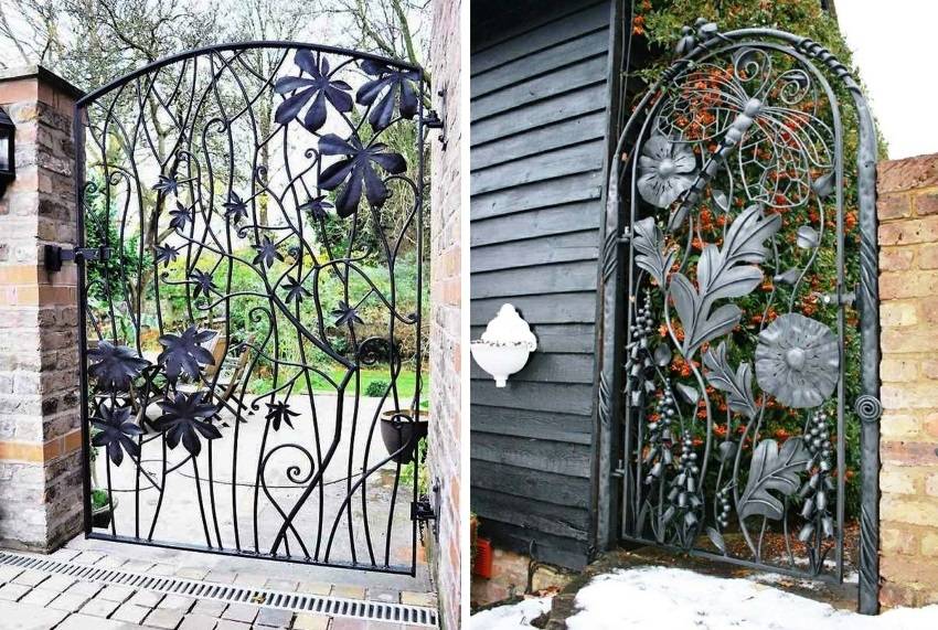 Декоративные особенности таких конструкций в первую очередь зависят от того, каким методом была изготовлена калитка. Существует два популярных способа производства кованых изделий: холодная ковка и горячая. В первом случае для производства используются различные формы и приспособления, посредством которых сгибается металл. Этот метод является наиболее популярным на сегодняшний день, так как позволяет выполнить кованую калитку своими руками.