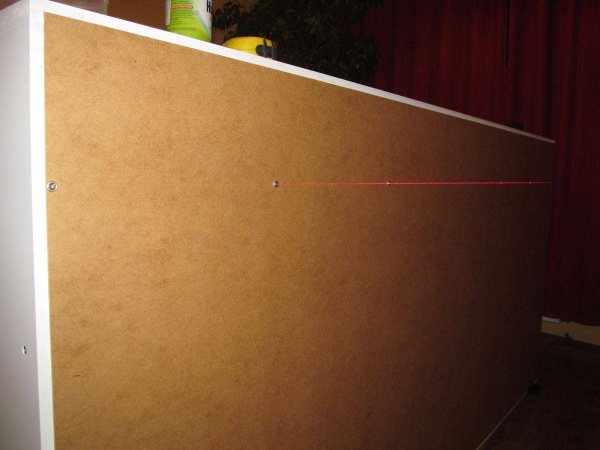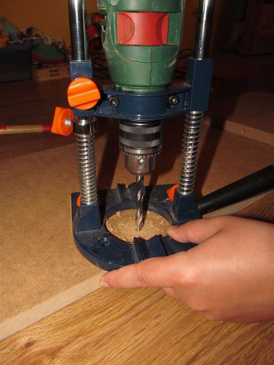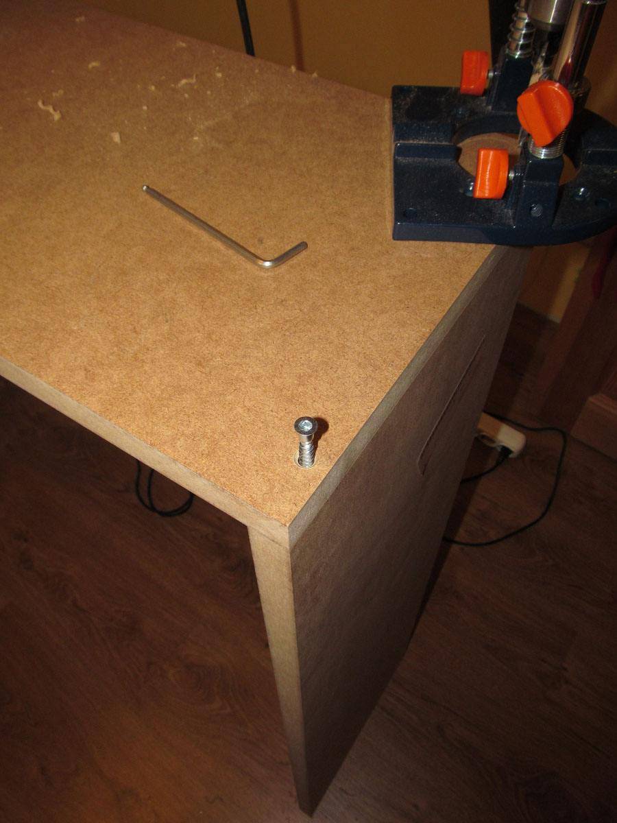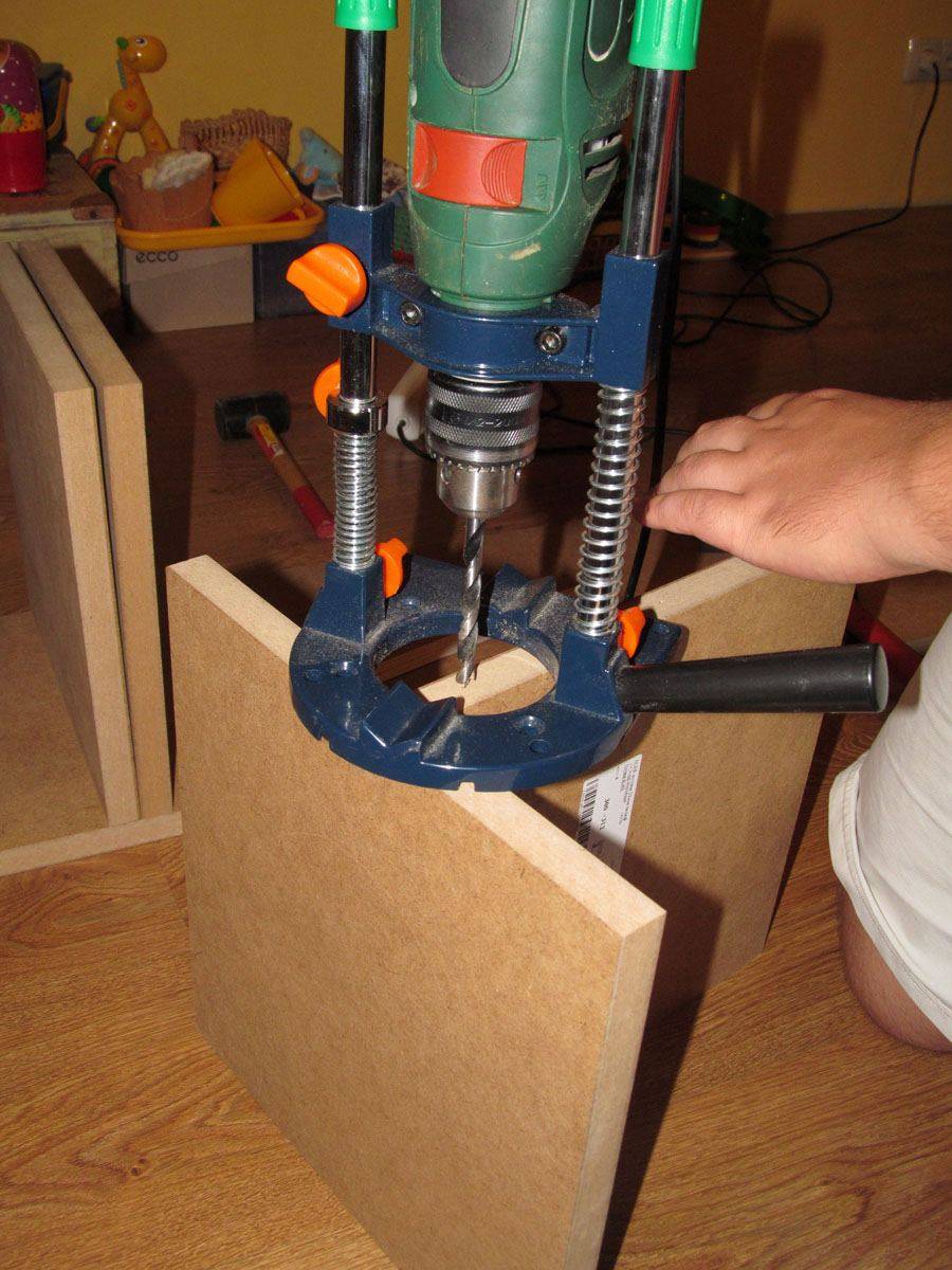 Согласно разметке, делаем отверстия в каждом углу и вкручиваем конфирматы.