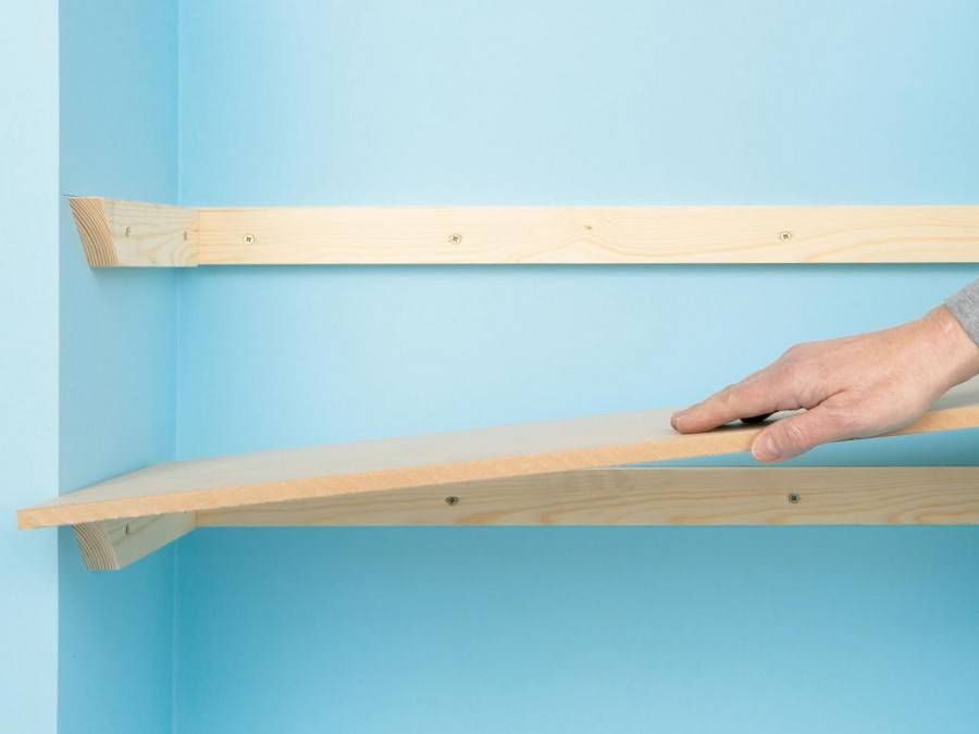 Осуществите раскройку материалов по нужным размерам, либо, в случае использования магазинных заготовок, подготовьте их к сборке. Приступите к непосредственной сборке всех деталей и комплектующих, прикрепите к полке кронштейны, навесные петли либо другие подготовленные крепежные элементы.