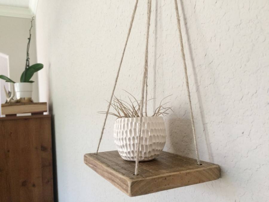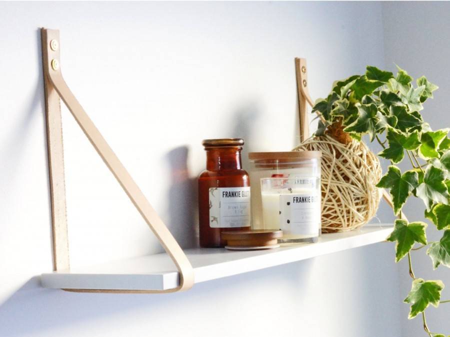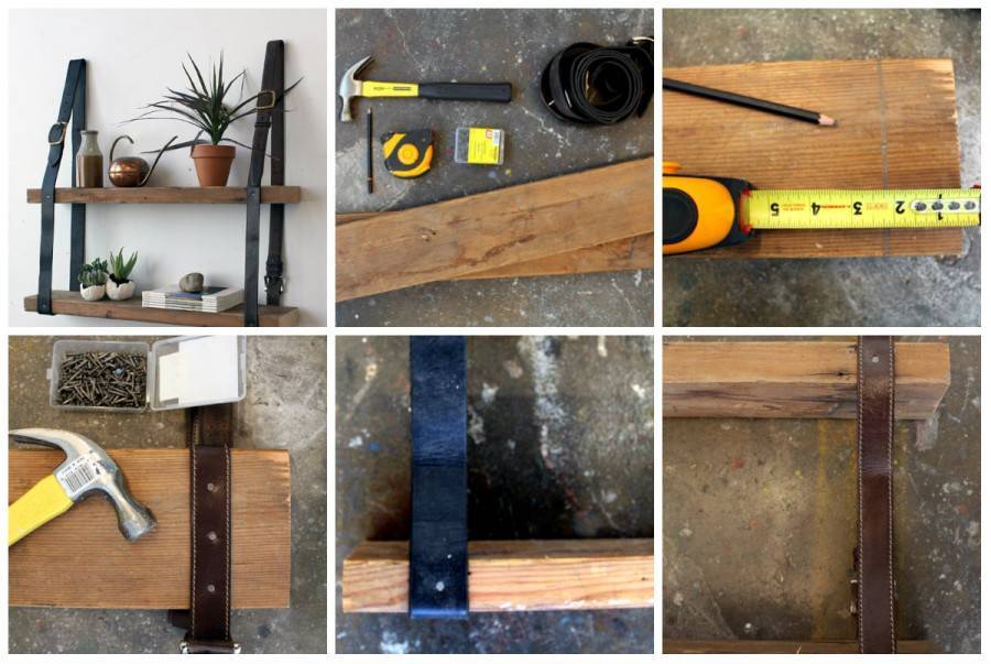 Полкой на ремнях – для её сборки вам понадобятся две ровных доски и два крепких кожаных ремня.