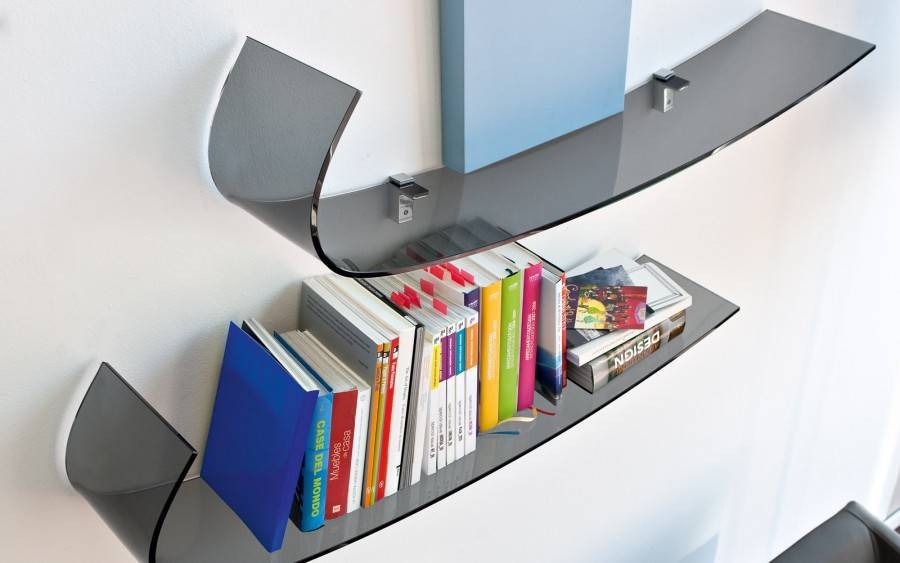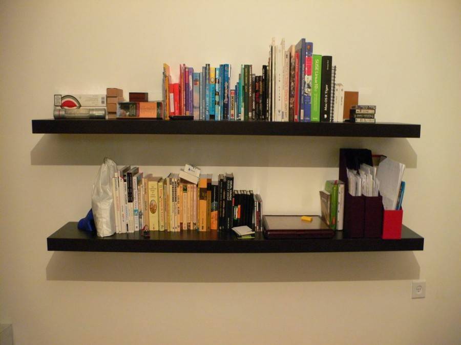 Книжной полкой-невидимкой – вам потребуется несколько стальных кронштейнов, на которые и размещаются книги. Смотря на такую конструкцию, кажется, что книги просто парят в воздухе.