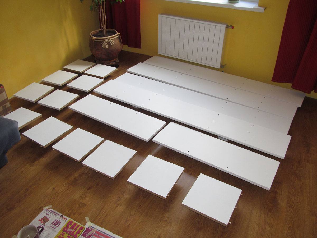Во-вторых, надо проверить на деле расхожее убеждение о том, что сделать самому подобную вещь бывает дешевле, чем купить готовую. Для этого я специально еще раз съездил в магазины ИКЕА и ОБИ, сфотографировал образцы готовых стеллажей и материалы с ценами. Имея представление, чего сколько нужно, мы легко подсчитаем, во сколько нам обойдется подобный стеллаж, сделанный своими руками. Вот и посмотрим, что получится дешевле.