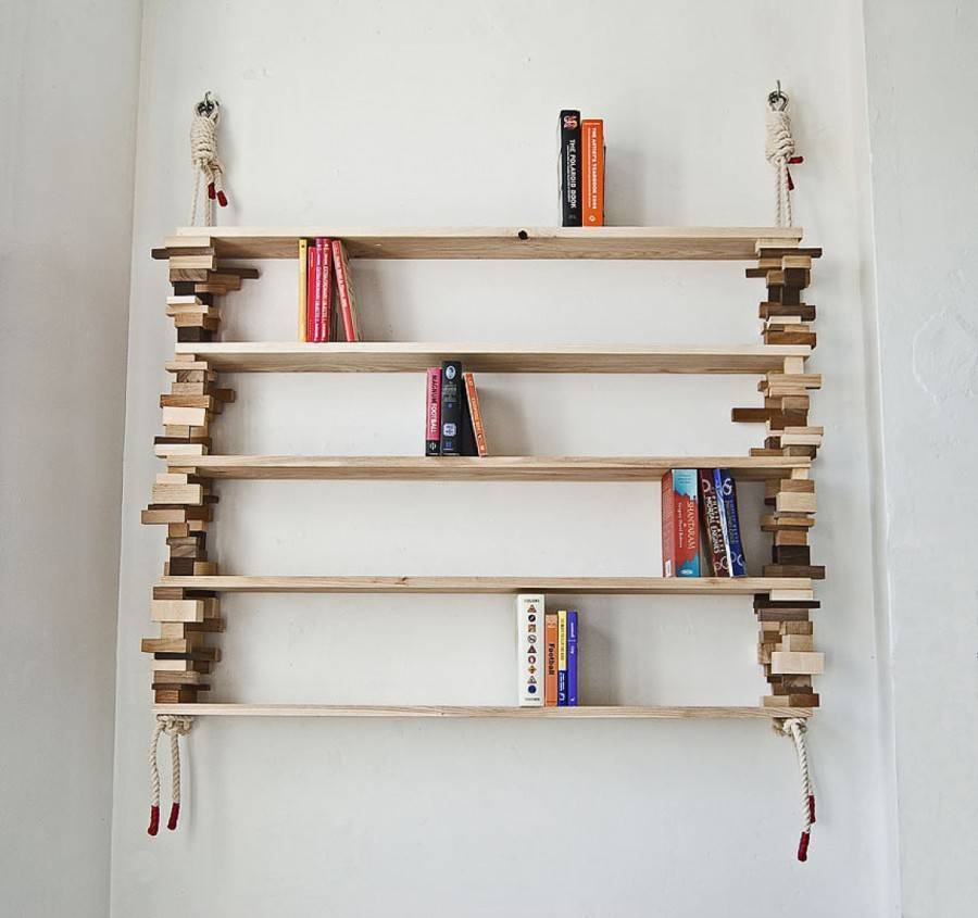 Оригинальные варианты монтажа деревянных стеллажей