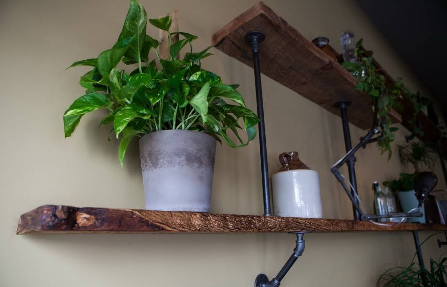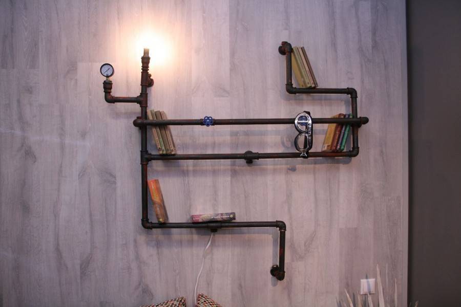 Настенной полкой из водопроводных труб – станет отличным украшением для интерьеров особенных стилей.
