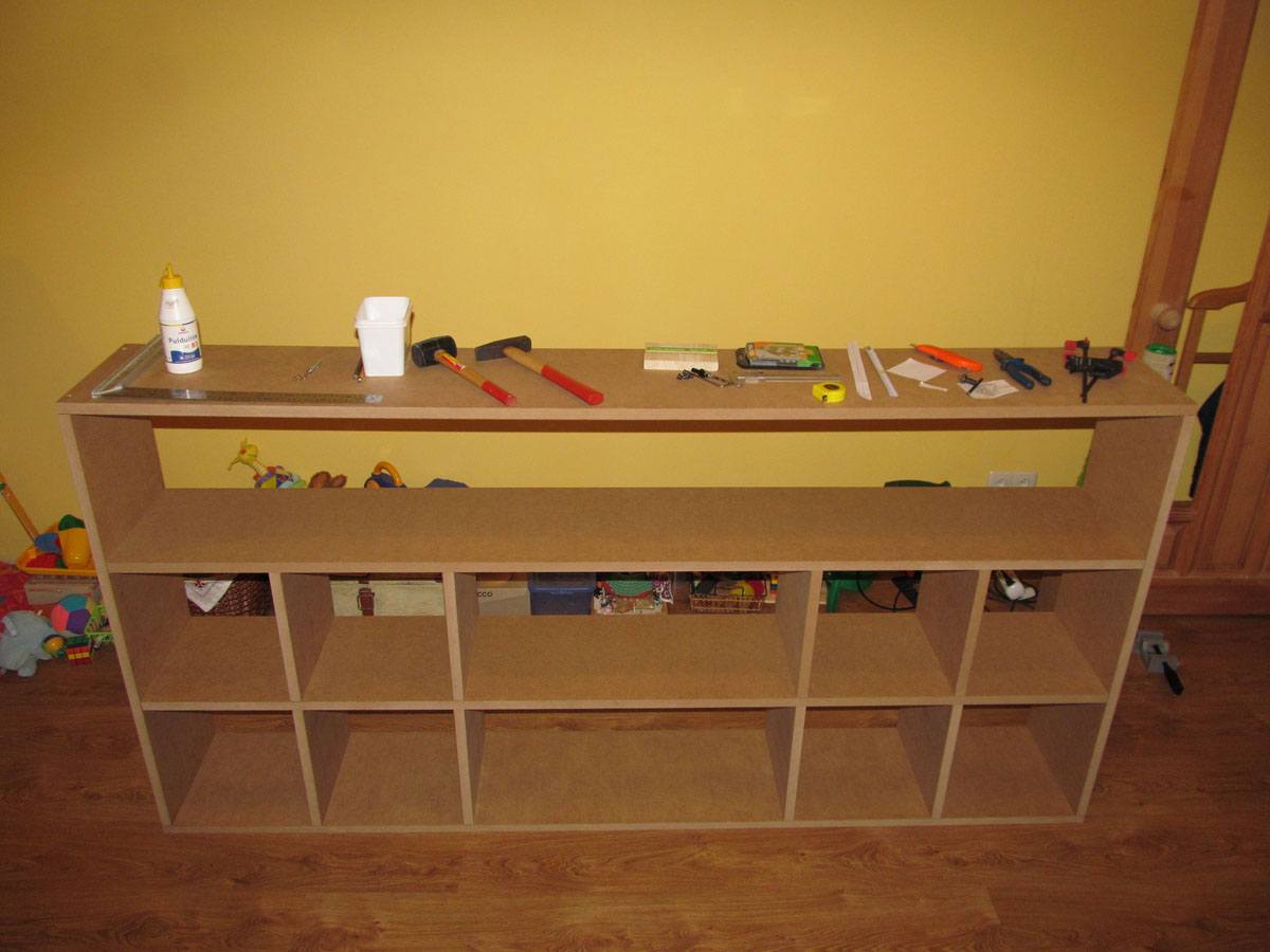 Устанавливаем длинную полочку и повторяем то же самое, чтобы сделать второй ряд.