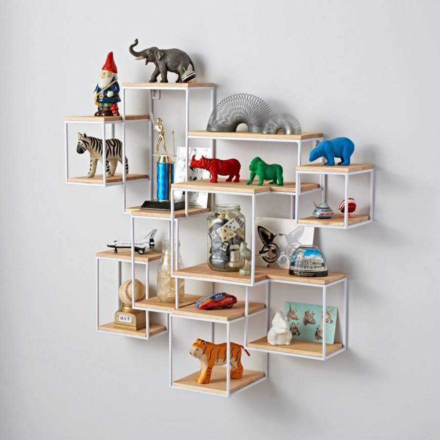 Гораздо интереснее стеллажи-решетки различной конфигурации: в них комбинируют и размера, которые образуют оригинальные горизонтальные, вертикальные и диагональные переплетения.