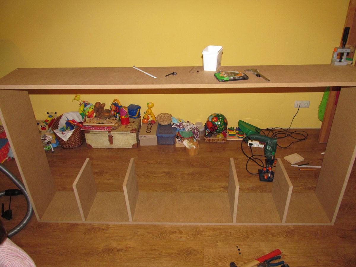 Снимаем верхнюю часть и делаем полочки для третьего ряда. Устанавливаем верхнюю полочку обратно.
