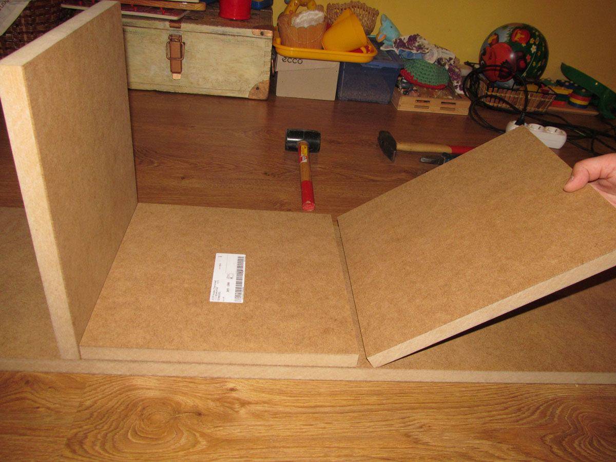 - плиты ДСП, либо доски толщина не менее тридцати миллиметров