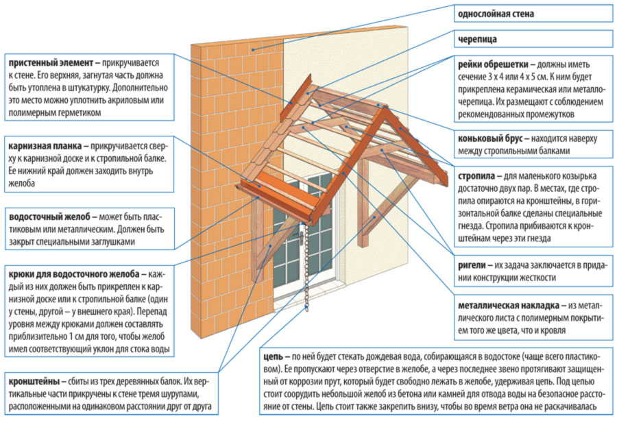 Конструкция односкатного козырька