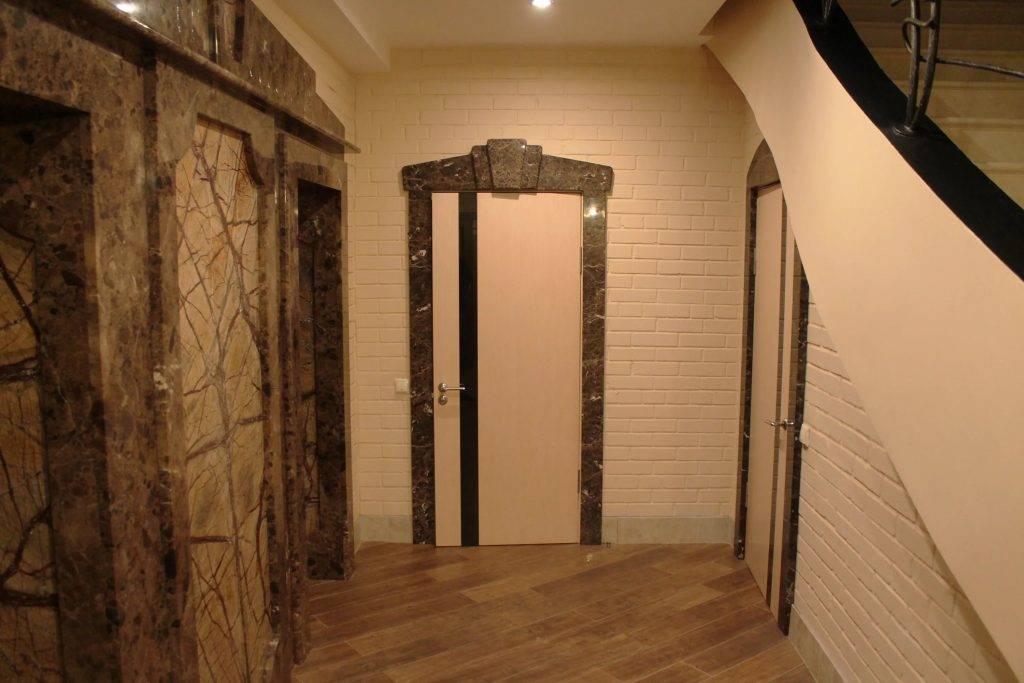 Ну а теперь о самой отделке. Чаще всего камнем декорируют именно входную дверь. Это касается как проёма со стороны улицы, так и внутрикомнатных откосов.
