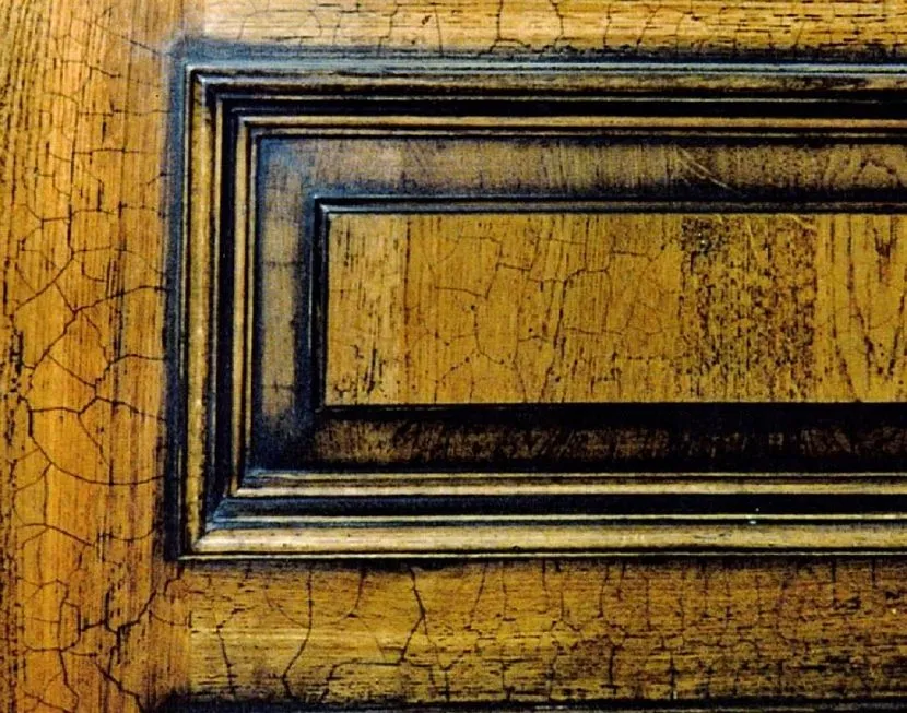 Если в жилье присутствуют предметы интерьера, то межкомнатную дверь выполняют по технологии искусственного состаривания. Для патинирования используют темную морилку или металлизированную краску. Результат для надежности закрепляют прозрачным лаком.
