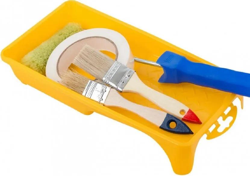 При окрашивании валиком эмаль удобнее размешивать в специальной кювете. Кисточки можно просто окунать в банку. При подготовке пульверизатора раствор разводят в отдельной емкости, потом переливают в бак устройства.