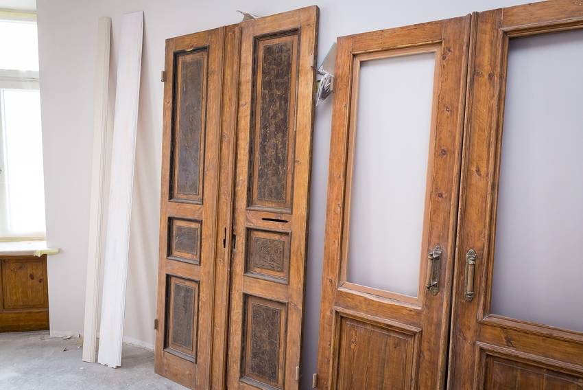 - Уникальность объекта. Некоторые двери имеют сложную конструкцию, прозрачные вставки, ценное покрытие из шпона, внутренний каркас из хорошего дерева, интересные элементы декора. Такие вещи лучше облагородить и сохранить.