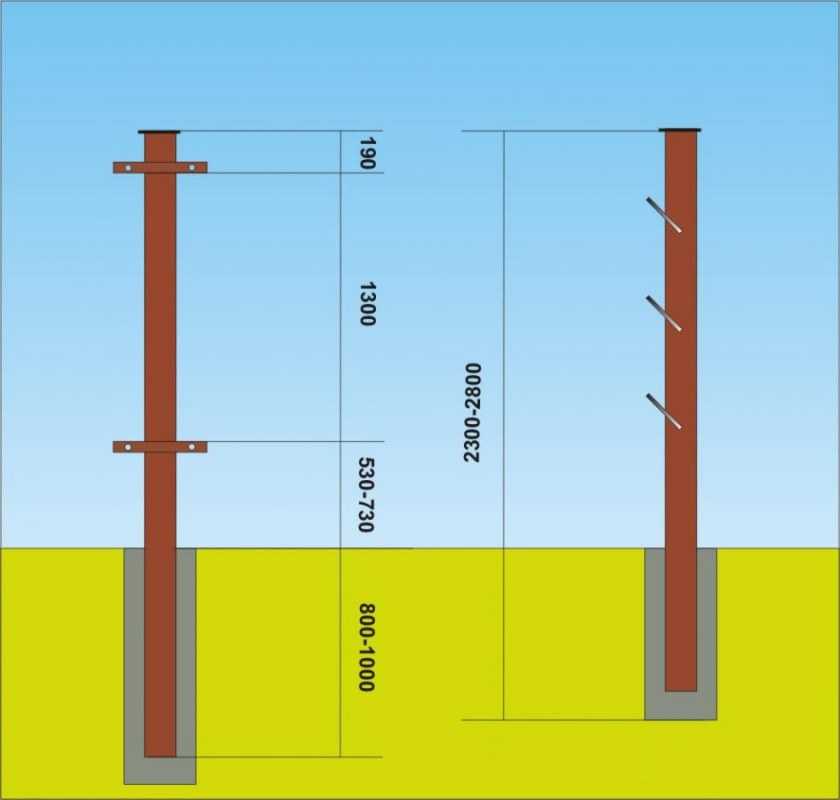 - Ямы для установки опор копают на расстоянии 2-2,5 метров.