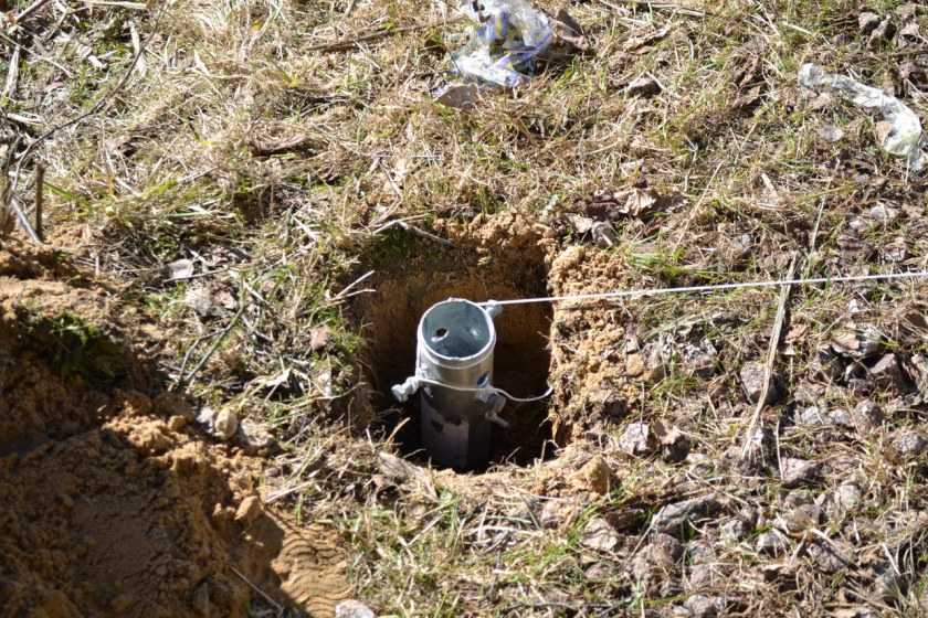 - Столбы заглубляют в ямы примерно на 120 см. Ямы заполняют цементом.