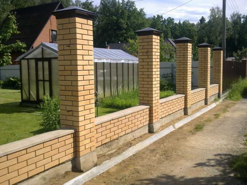 Кирпичный забор состоит из трех основных элементов: фундамента, столбов, пролетов. Каждый из них имеет свою технологию строительства: