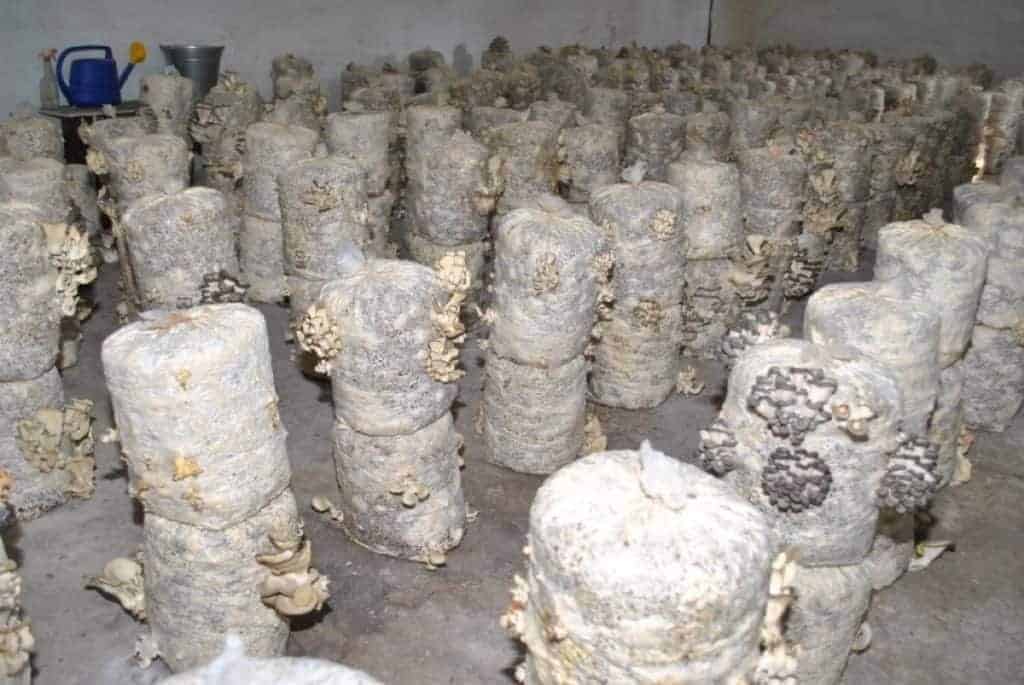 | В мешках или в брикетах | Данный способ очень прост и позволяет выращивать грибы прямо в квартире или доме. Если вдруг в мешках/брикетах появятся признаки заражения, то их легко утилизировать, не заразив при этом остальной урожай. |