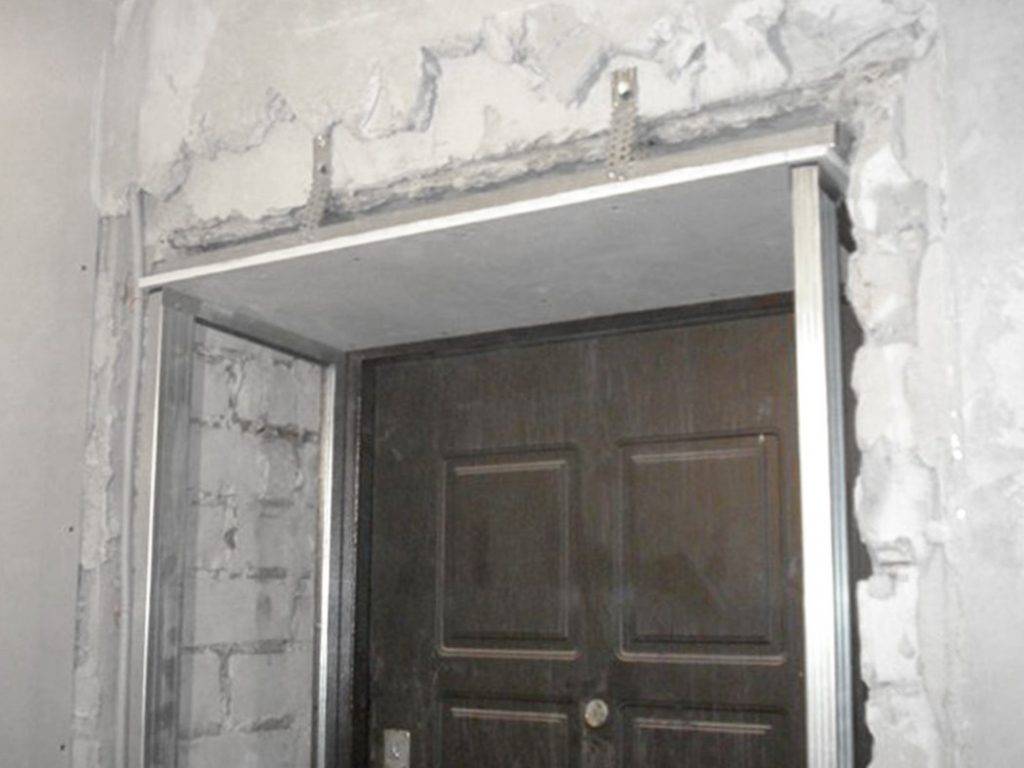 - Крепление можно также производить по оцинкованным направляющим, но для этого потребуется устройство не менее 2 слоёв ГКЛ и наличие свободного места, так как конструкция «съедает» не менее 50 мм с каждой стороны проёма.