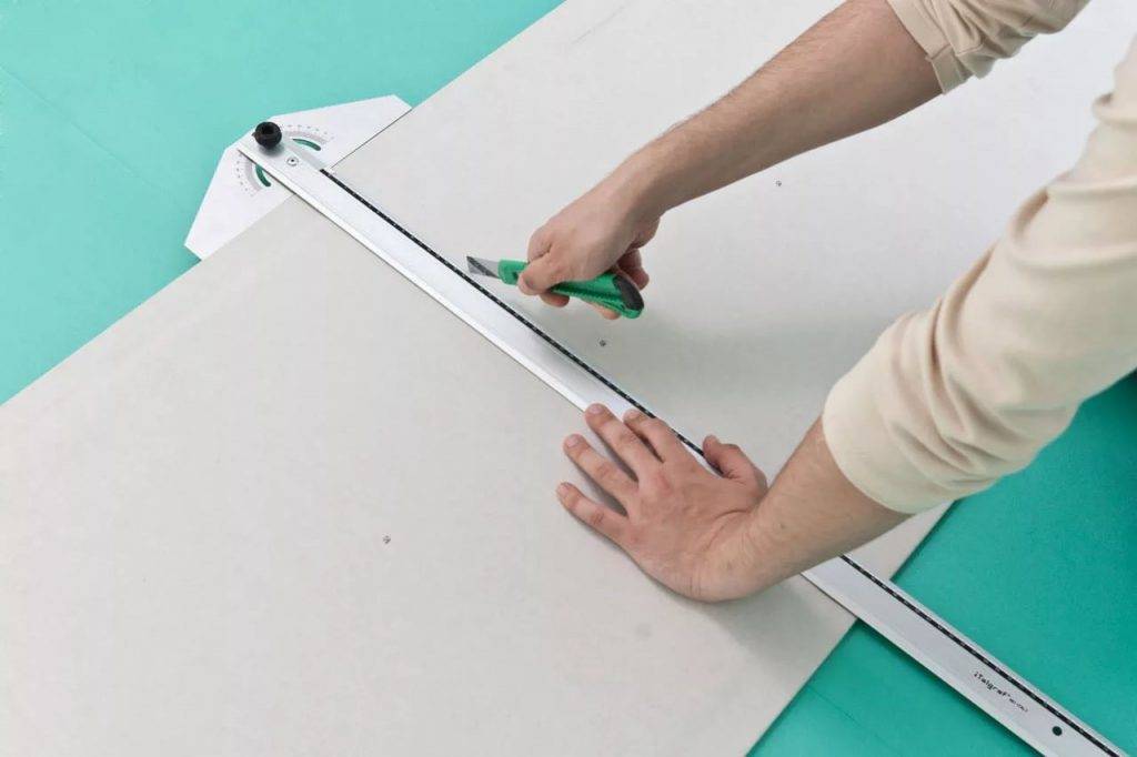 - Материал раскараивается после предвартельно нанесённой разметки с помощью стандартного строительного ножа.
