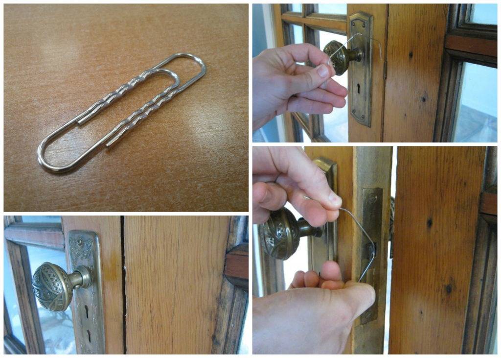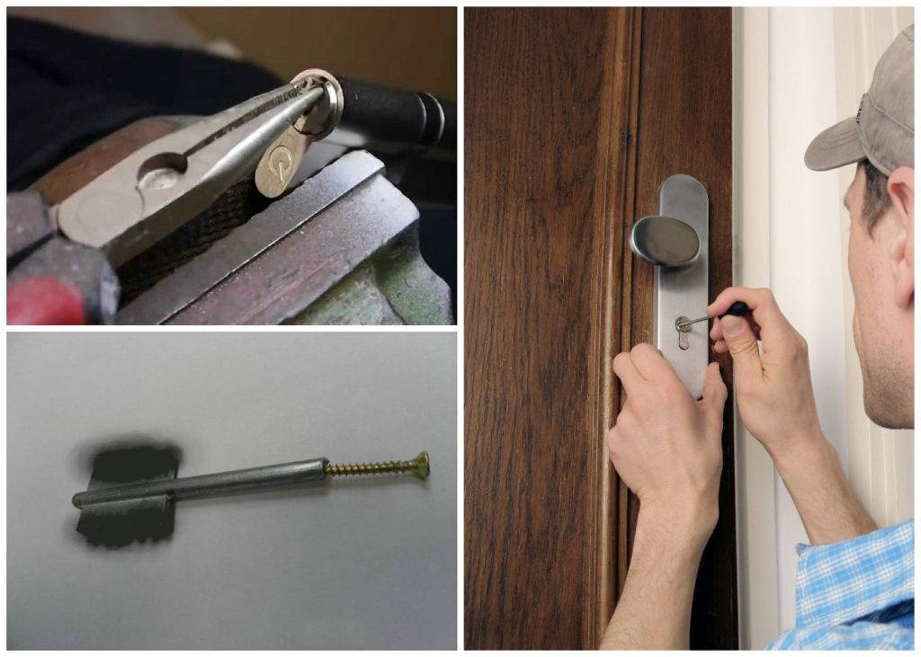 Как вскрыть замок входной двери изнутри? Найти отмычку и попробовать воспользоваться ею. Счесать (высверлить штифты) и открыть дверь, используя отвертку. Убрать фурнитуру и попробовать открытие двери той же отверткой. Отжать дверь, то есть отодвинуть ее в сторону навесов нажать, чтобы она открылась.