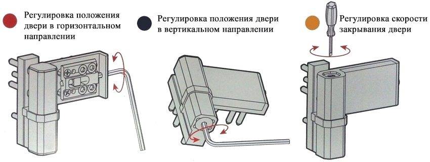 Схема вертикальной и горизонтальной регулировки двери