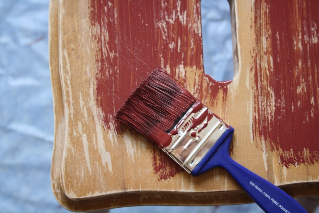 Аккуратно снимите старый слой краски и отшлифуйте полотно до голой древесины.