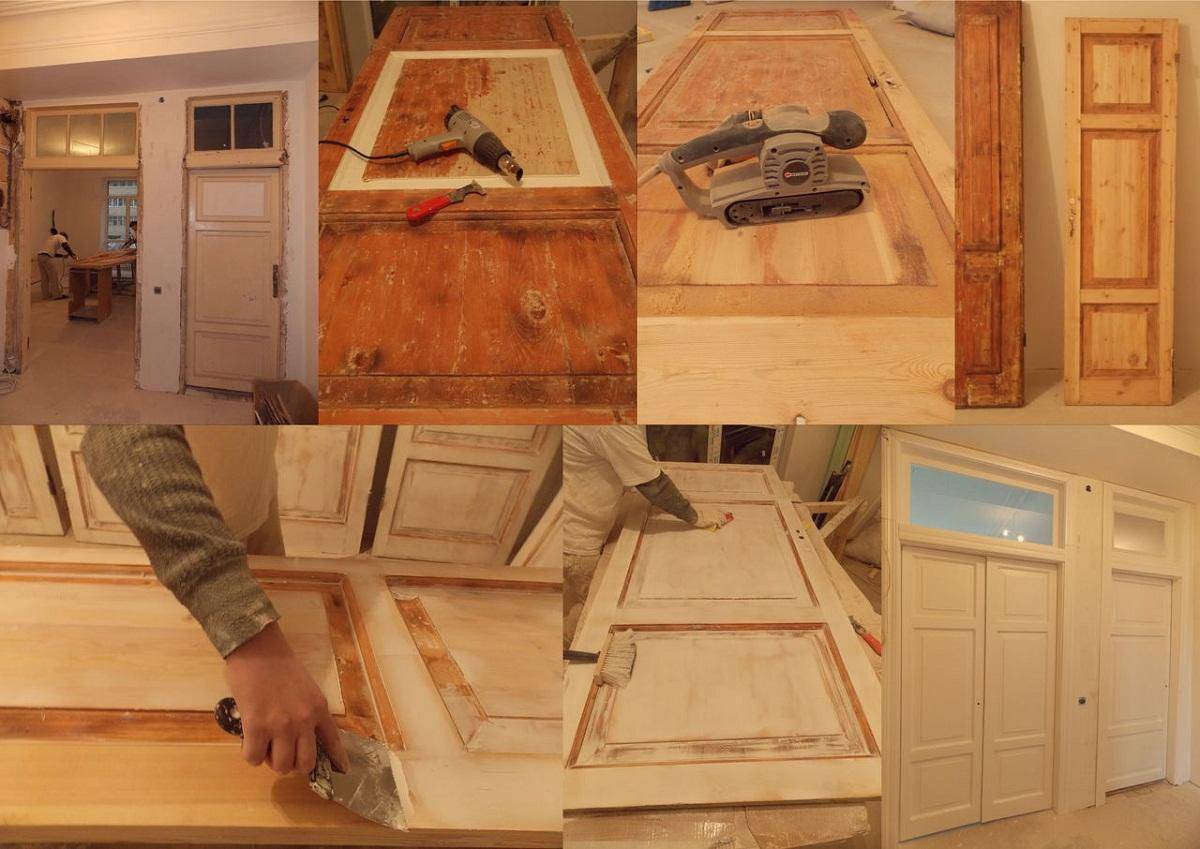 Реставрацию старых дверей из ДВП или массива проводим по следующей схеме: