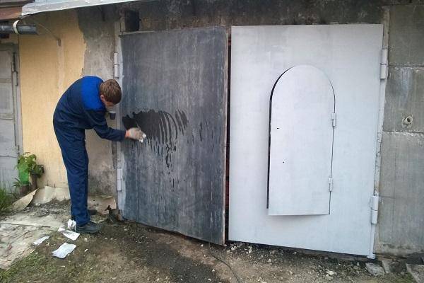 Процесс покраски гаражных ворот