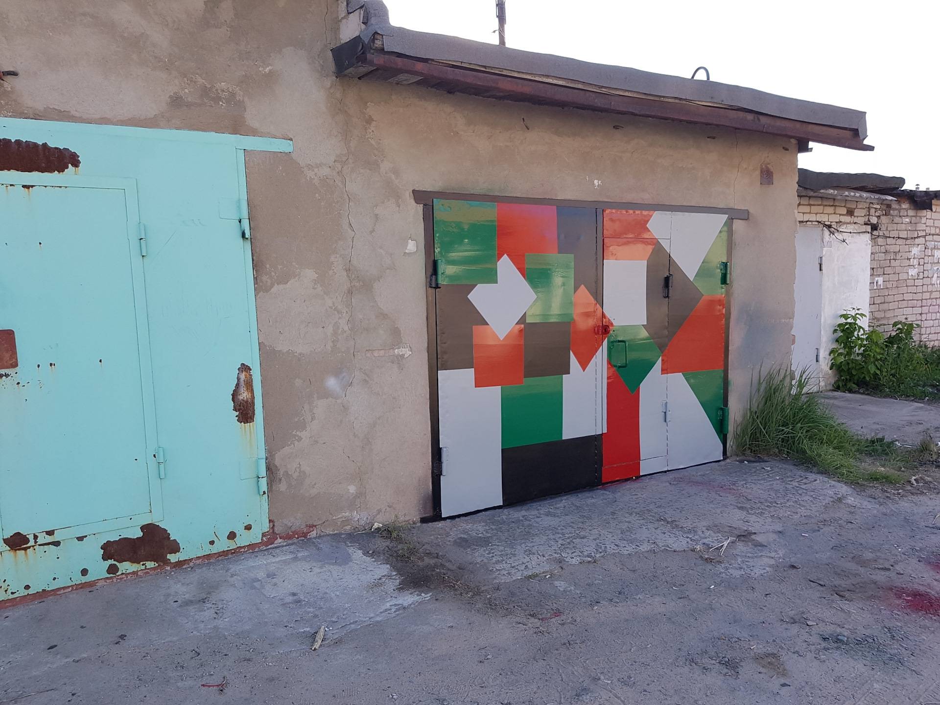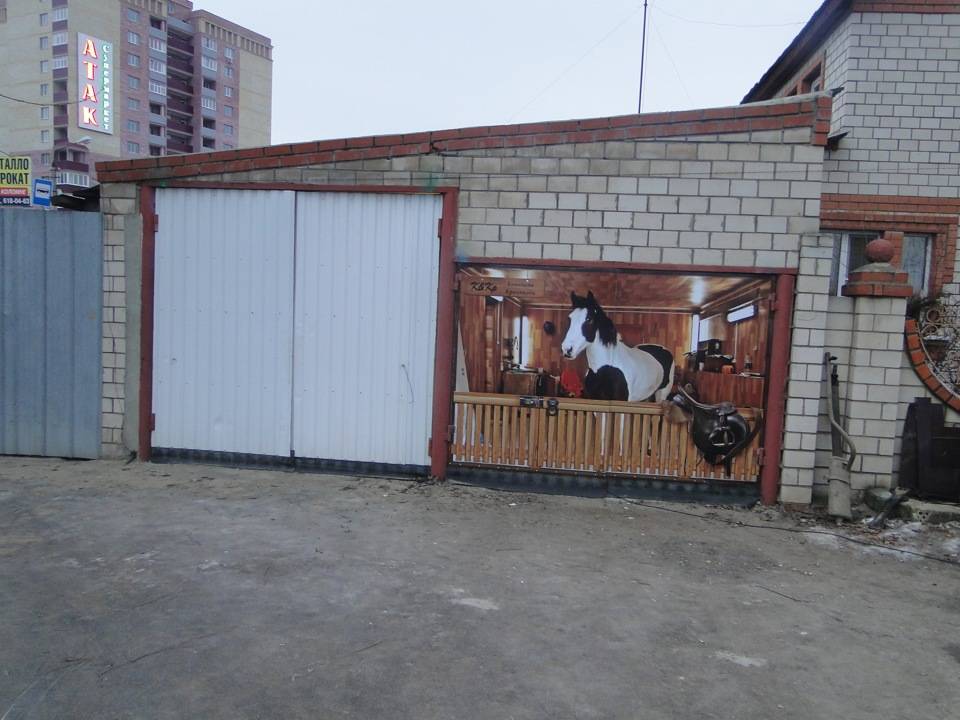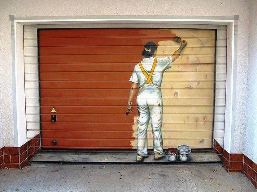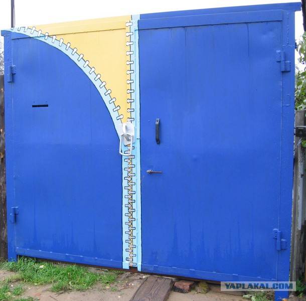 Интересно окрашенные ворота гаражаИсточник 1000000diy.ru