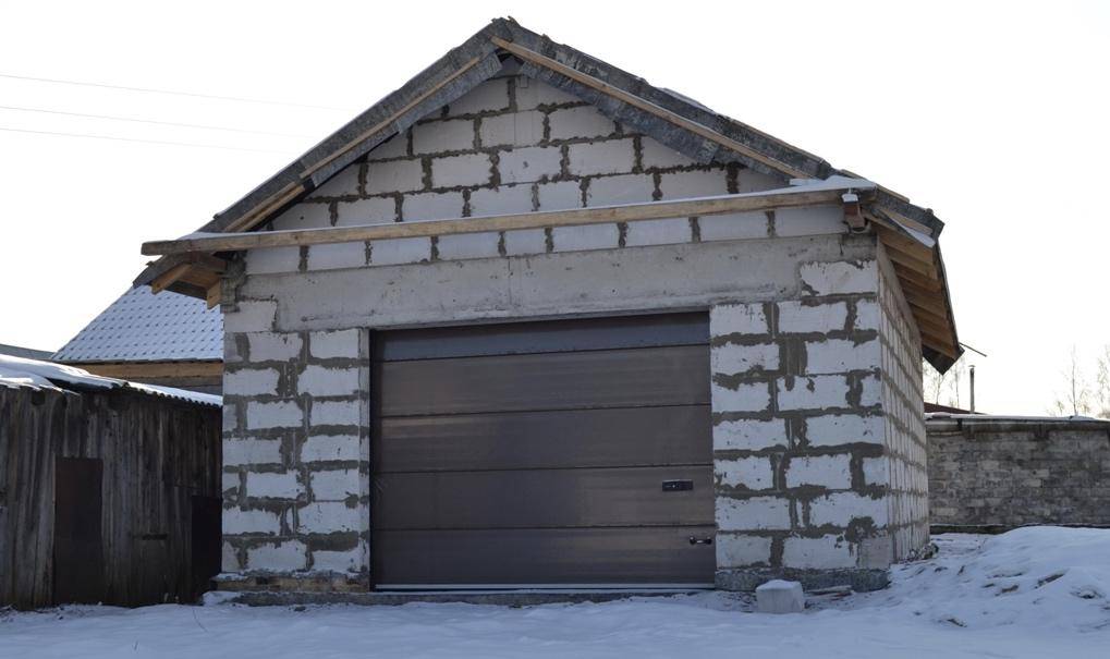 Для установки ворот в стене из пеноблоков закладывается железобетонная перемычка. Как вариант, устанавливается двусторонняя рамка из стального уголка. Возводя здание, мастер обкладывает блоки вокруг рамки. Для придания им нужного вида используется ножовка, блоки обрезаются по высоте. Для гаража выбираются ворота такой конструкции, которая будет устраивать и с эстетической точки зрения, и с финансовой.