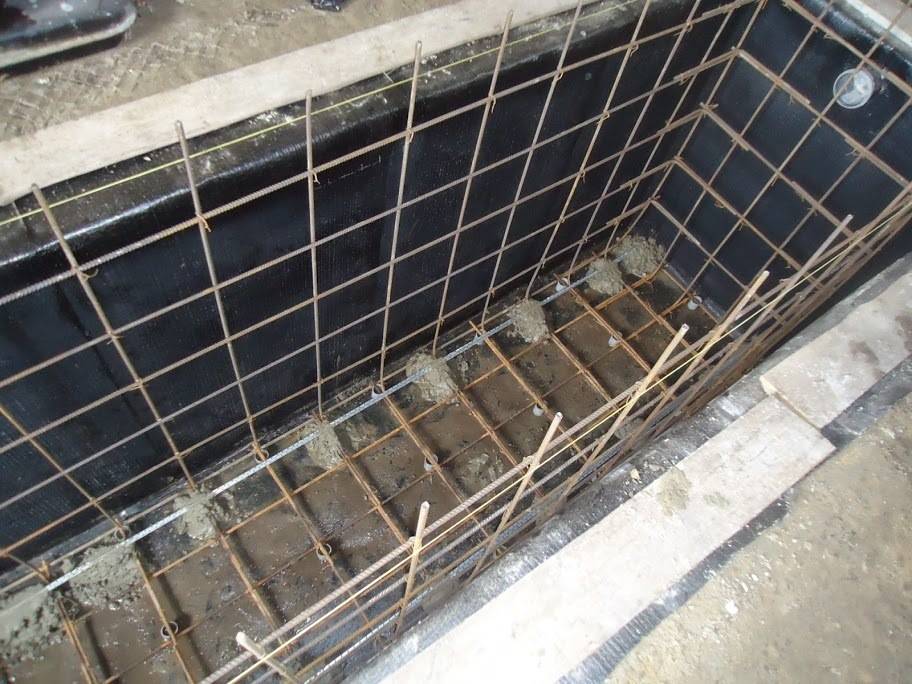 После этого устанавливают опалубку из досок, стенки которой покрывают слоем гидроизоляции из полиэтилена или рубероида. Следующий этап – сооружение арматурного каркаса из прутьев толщиной 12-14 мм.