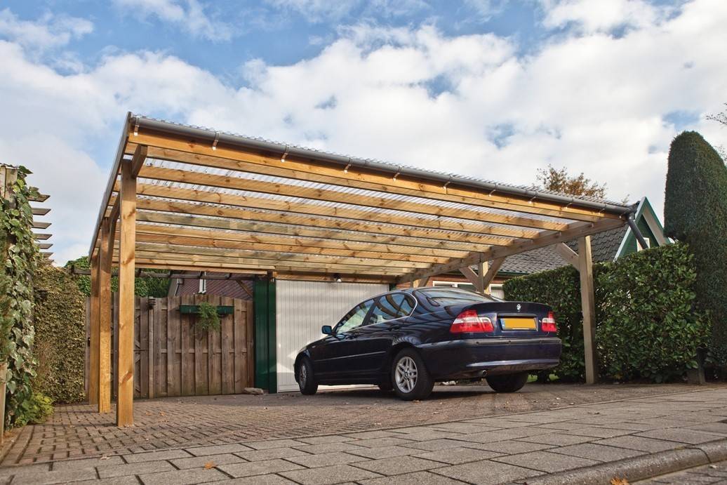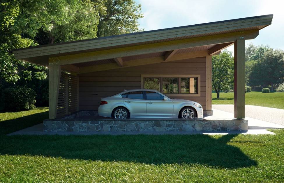 Гаражи и навесы для автомобилей, фото консольно-опорной пристройки к дому