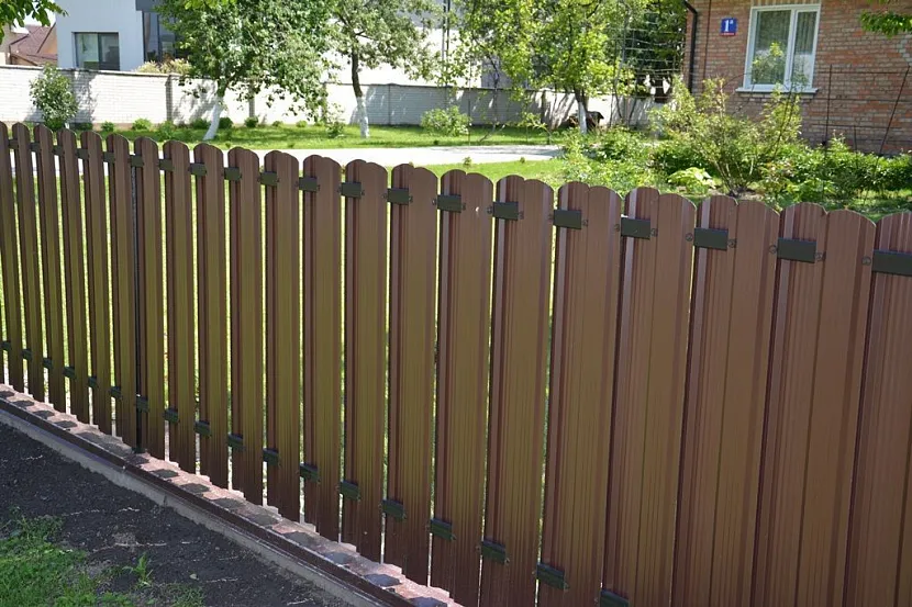 - металлический штакетник: окрашенный в разные цвета, издали мало отличим от деревянного, однако срок его службы выше