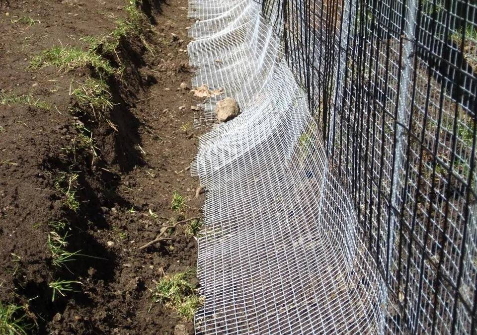 Нижнюю часть сетки закапывают землей, сложенной изначально по обе стороны от траншеи. После того как траншея будет заполнена, ее тщательно утрамбовывают ногами. При необходимости землю досыпают и проверяют забор на прочность и устойчивость.