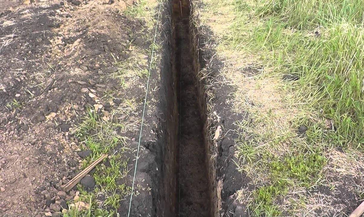 Во время копки траншеи под основание забора в низшей точке территории нужно контролировать, чтобы глубина котлована находилась глубже плодородного слоя грунта.