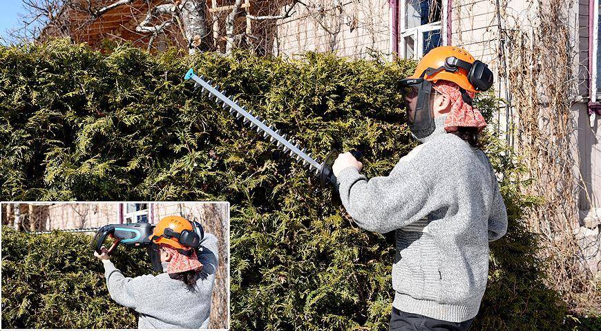 Для стрижки изгороди из туи используйте современные аккумуляторные инструменты