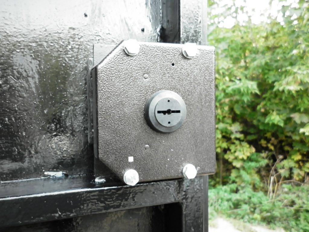При этом гаражные ворота запираются при помощи мощного ригельного замка. Причем было бы хорошо механизм замаскировать, чтобы в открытом состоянии со стороны было непонятно, какой замок установлен.