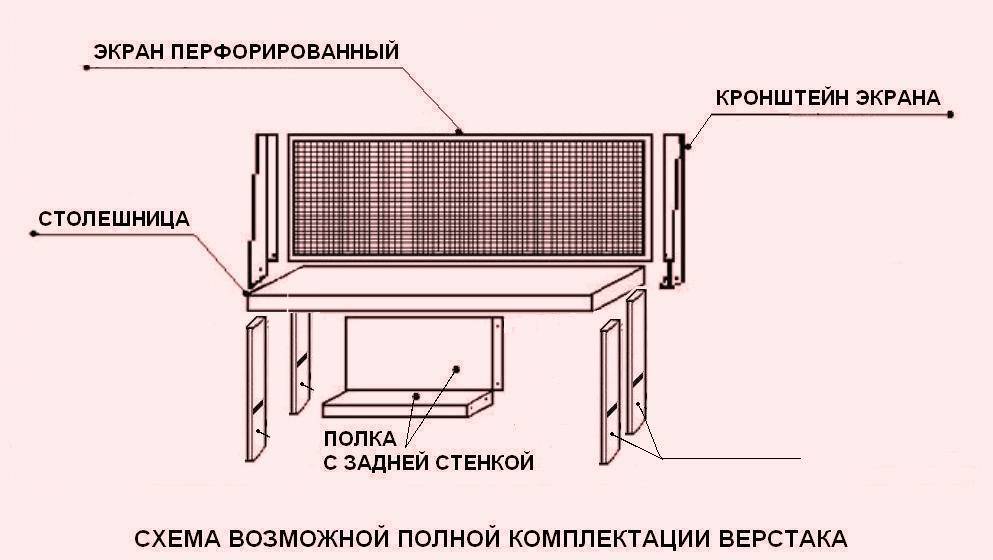 Очень важно определиться с размерами столешницы. На широкой столешнице удобнее работать, поэтому, если вам позволяют условия – не следует экономить. Оптимальная ширина столешницы должна быть такой, чтобы вы имели возможность дотянуться до инструментов, находящихся на противоположном конце