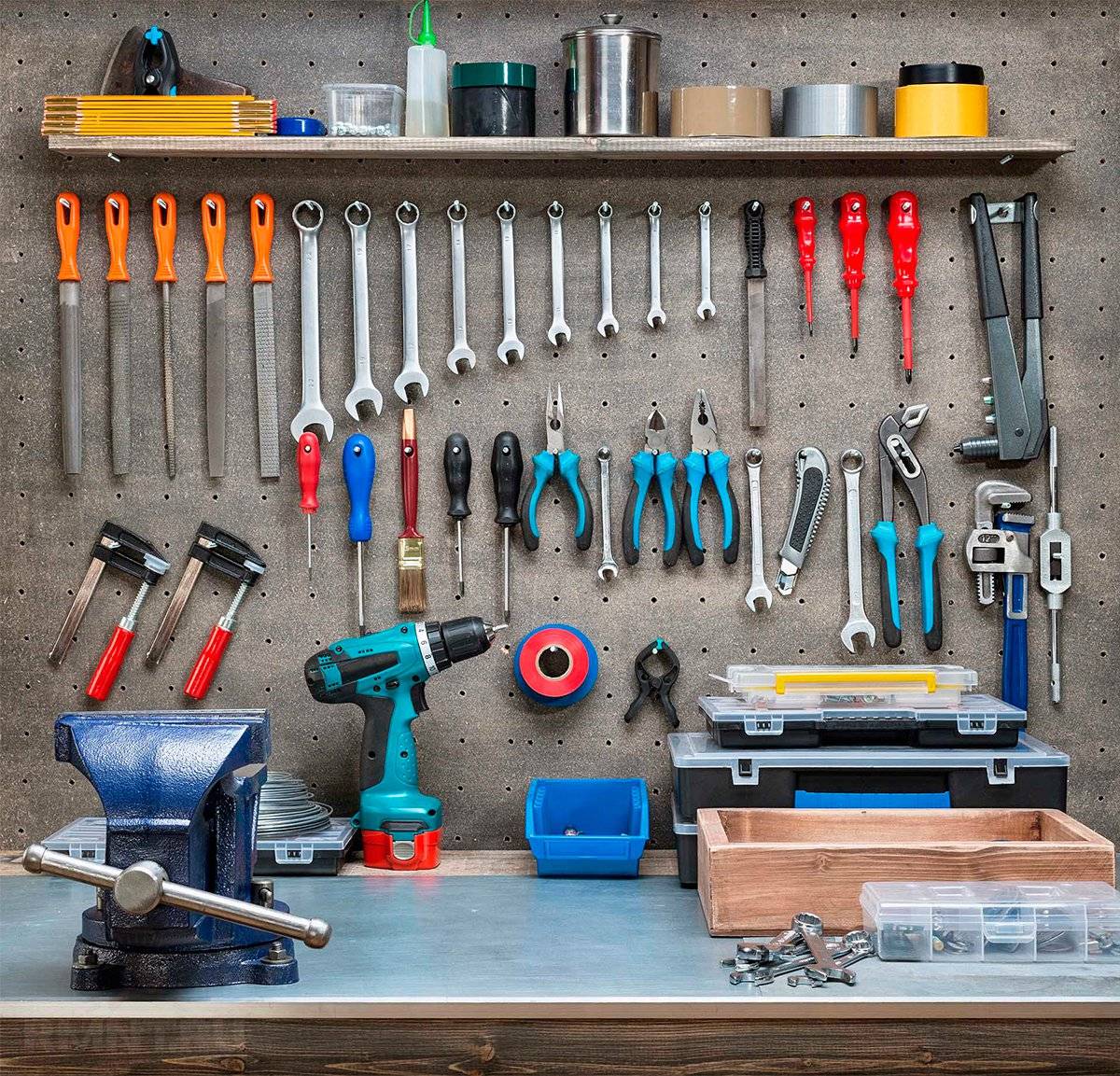 На верстак возлагается важная задача — удобное хранение инструмента. Правильная конструкция используется не только в качестве рабочего стола, но и как удобное вместилище расходных материалов, запчастей и инструментов.
