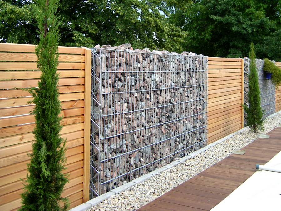 Название ограждения происходит от офисной занавески. Забор выглядят очень необычно. Планки укладывают на направляющие под углом.