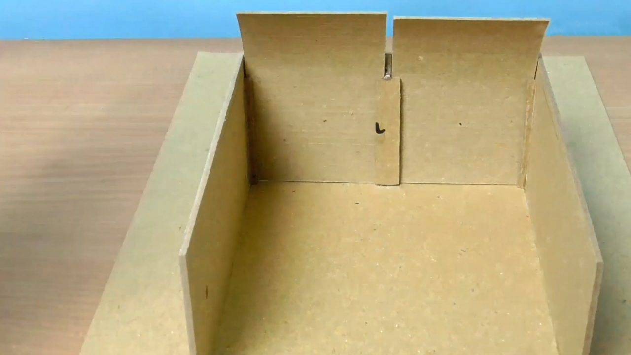 Узкую полоску из картона закрепляем клеем на каждой из боковых стенок.