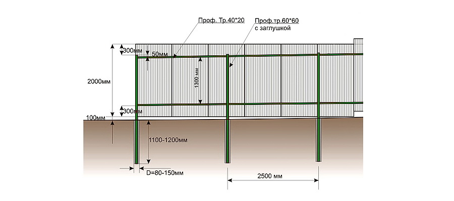 Чертеж для монтажа забора на даче