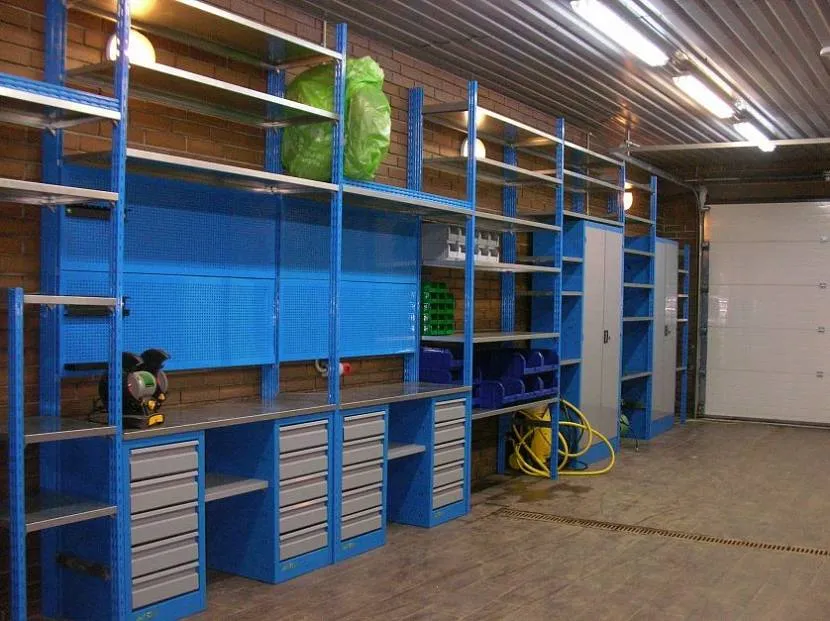 - верстака – он должен быть организован с максимальным удобством и представлять рабочую поверхность, совмещенную с полками, или хотя бы находиться по соседству с ними, чтобы автовладелец имел возможность брать необходимый инструментарий с места.