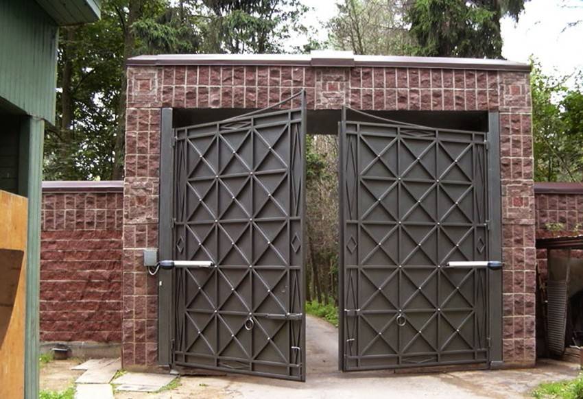 Калитка состоит из опорных столбов и дверного полотна на раме, которое крепится к столбам при помощи петель. Столбы могут быть кирпичные (каменные), деревянные или металлические. В кирпичные при кладке замуровывают небольшие куски толстого металла или толстый металлический прут, к которым впоследствии приваривают раму.