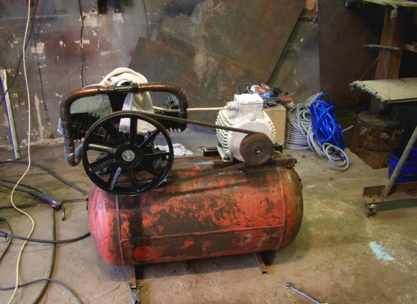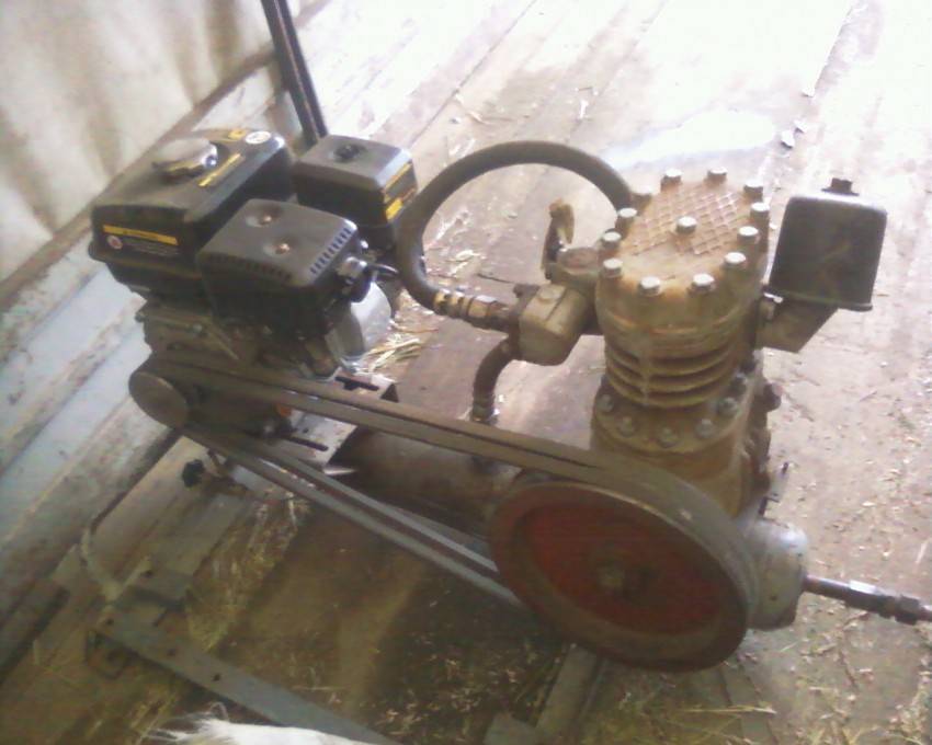 В конструкции заводского компрессора присутствует электрический двигатель, передающий крутящий момент к рабочей камере через ременную передачу. Что касается самодельного компрессора, то он состоит из корпуса и самого двигателя, без ремней.