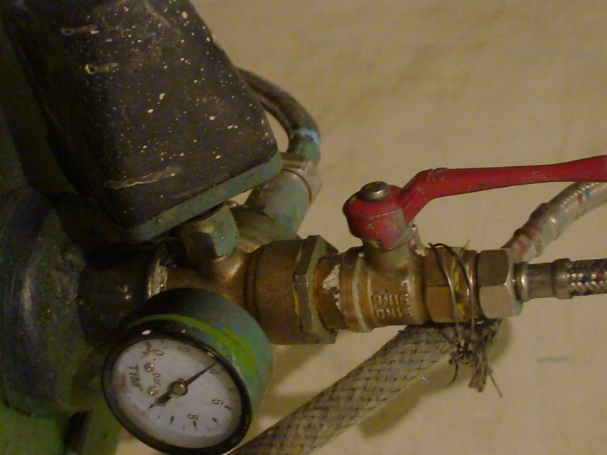Регулировочное реле устанавливаем на минимальном давлении, и совершаем подачу питания на нагнетатель. Не забываем за манометр, который позволяет контролировать давление в резервуаре. После того как нам удалось удостовериться, что реле отключает двигатель, нужно проверить герметичность соединений.