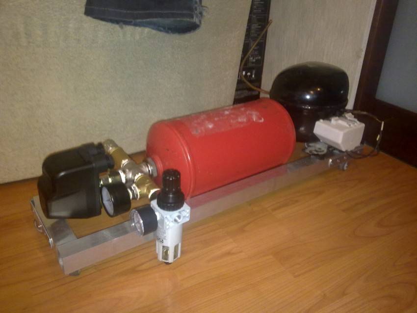 Предпочтительней использовать компрессоры от холодильников старого советского образца, они позволяют нагнетать более высокое давление, нежели их импортные аналоги.