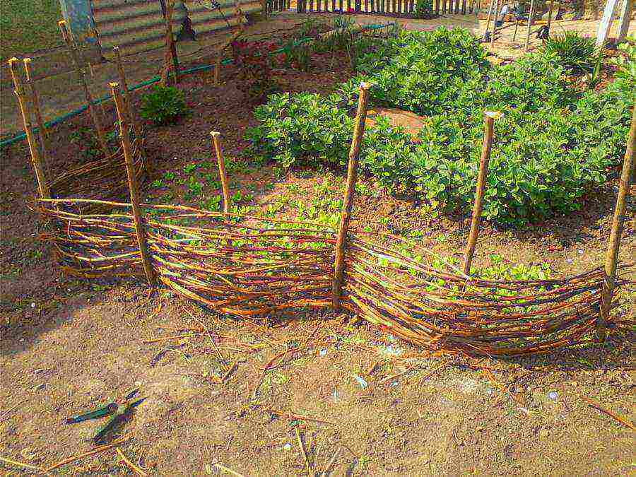 Тонкие ветки лозы и ивы. Из них можно создавать настоящие шедевры. Если взять ветки ранней весной и установить в землю, то получится очень красивая живая изгородь.