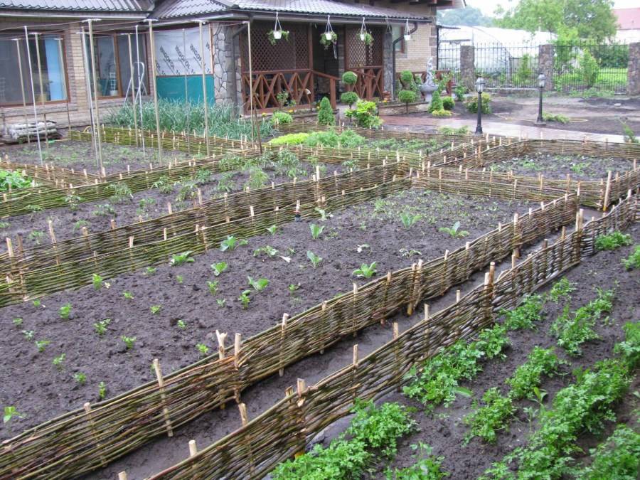 Лозу чаще используют для изготовления декоративных заборов, которые дополняют дизайн участка, разделят его на зоны или украсят клумбу.