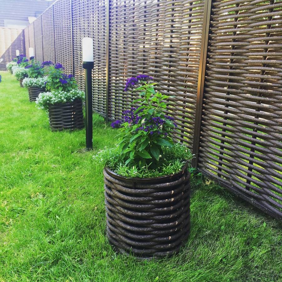 Стоит перечислить и недостатки плетеного забора из лозы: ненадежность, невозможность служить полноценным забором, короткий срок эксплуатации, затрудненность замены поврежденных участков, отсутствие пожарной безопасности. Тем не менее, плетеные изгороди достаточно распространены в ландшафтном дизайне.